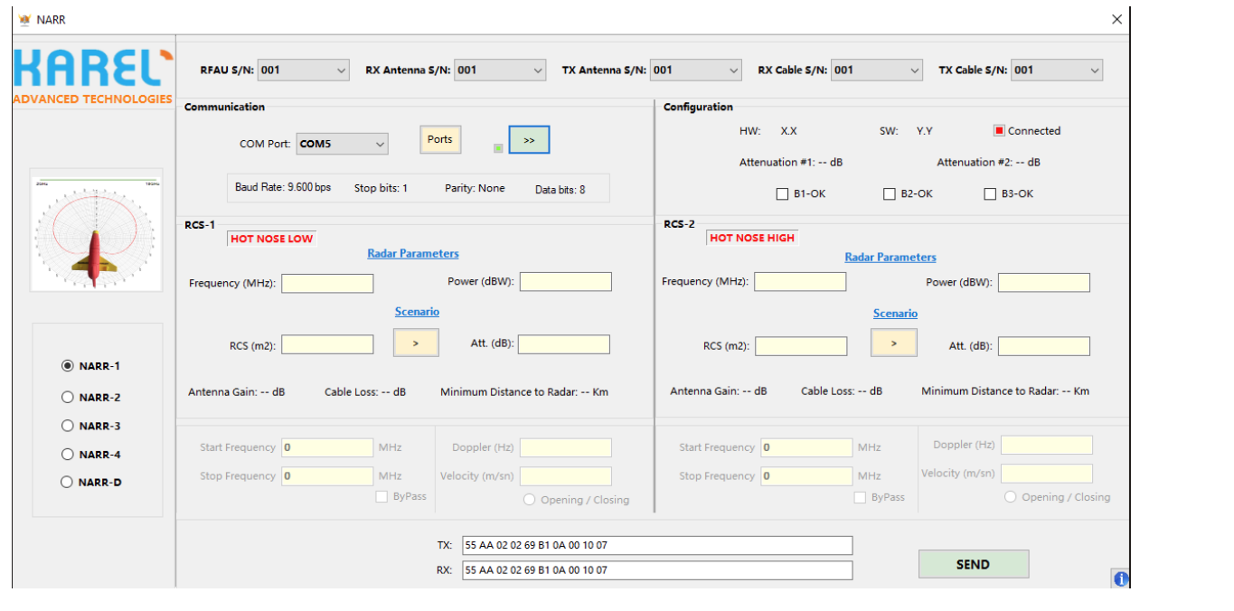 NARR-01, aşağıdaki parametrelere göre istenen RKA (Radar Kesit Alanı) elde etmek için gereken zayıflatmayı hesaplayan Görev Planlama Yazılımı ile birlilkte kullanılır.