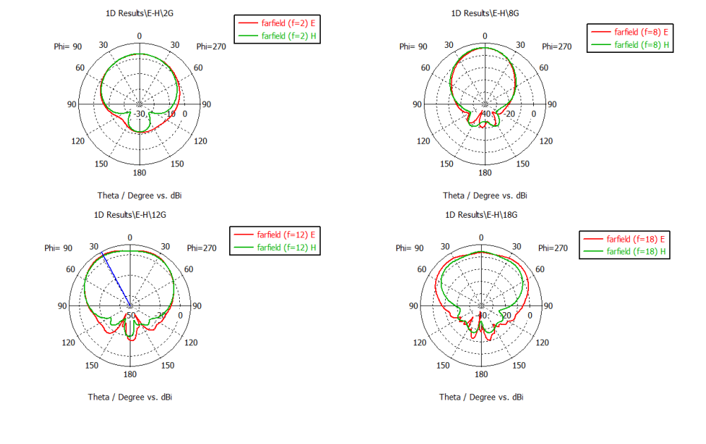 2.000 MHz, 8.000 MHz, 12.000 MHz ve 18.000 MHz için anten paternleri şekildeki gibidir.